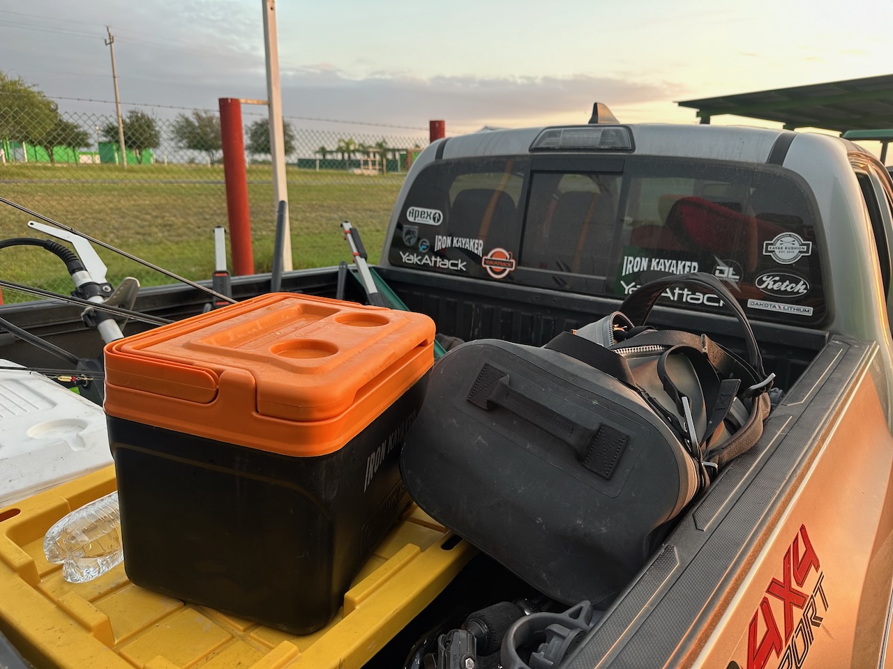 After a good night sleep we rigged up some of Jerry’s boats in his carport, which is like a kayak shop. Flying in from the USA with short notice I didn’t have a way to bring my Apex Tyr, so I chose the “Take Two” by Jackson Kayak. Chad took the Bonefide and Austin the Native. We loaded the trailer with these very heavy beasts of boats, which is a great workout if you don’t wreck yourself. It had three levels of kayaks on it. An hour to the lake and we got in a few hours of practice.